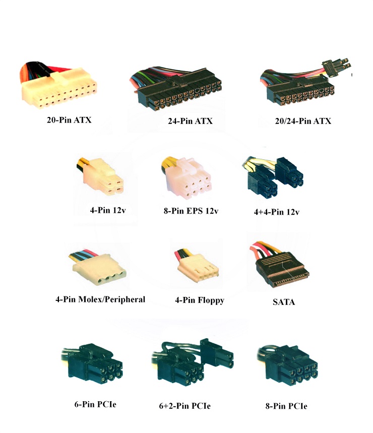 Zdroj nám napájí počítač, zpracovává střídavé napětí ze sítě na nízké stejnosměrné napětí. Ke zdroji v počítači připojujeme přímo komponenty jako je základní deska, grafická karta, pevné disky.Na napájecím zdroji nalezneme tyto konektory:
